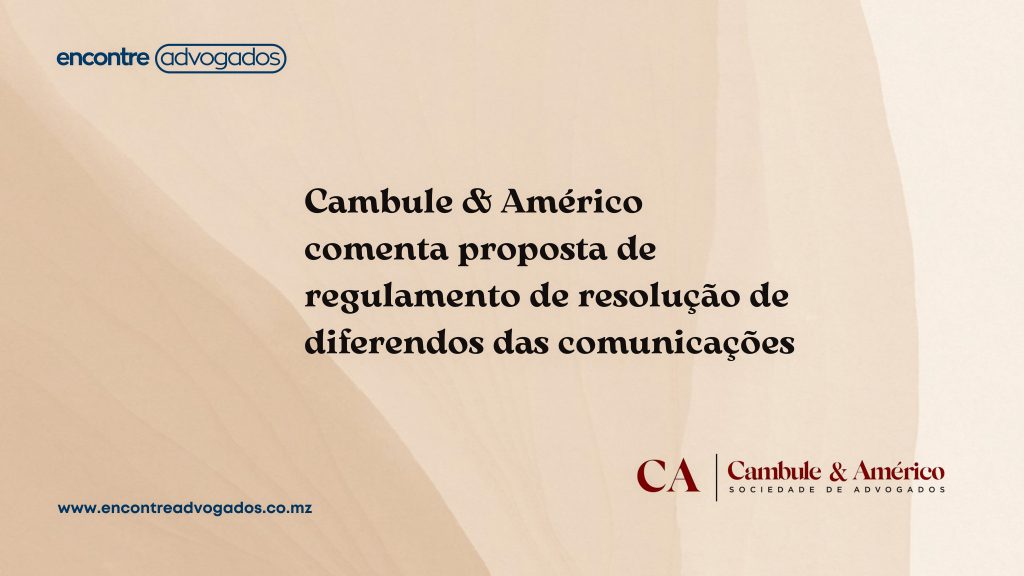 A Cambule & Américo, Sociedade de Advogados, submeteu as suas contribuições à Proposta de Regulamento de Resolução de Diferendos das Comunicações, elaborada pelo Instituto Nacional de Comunicações de Moçambique (INCM).