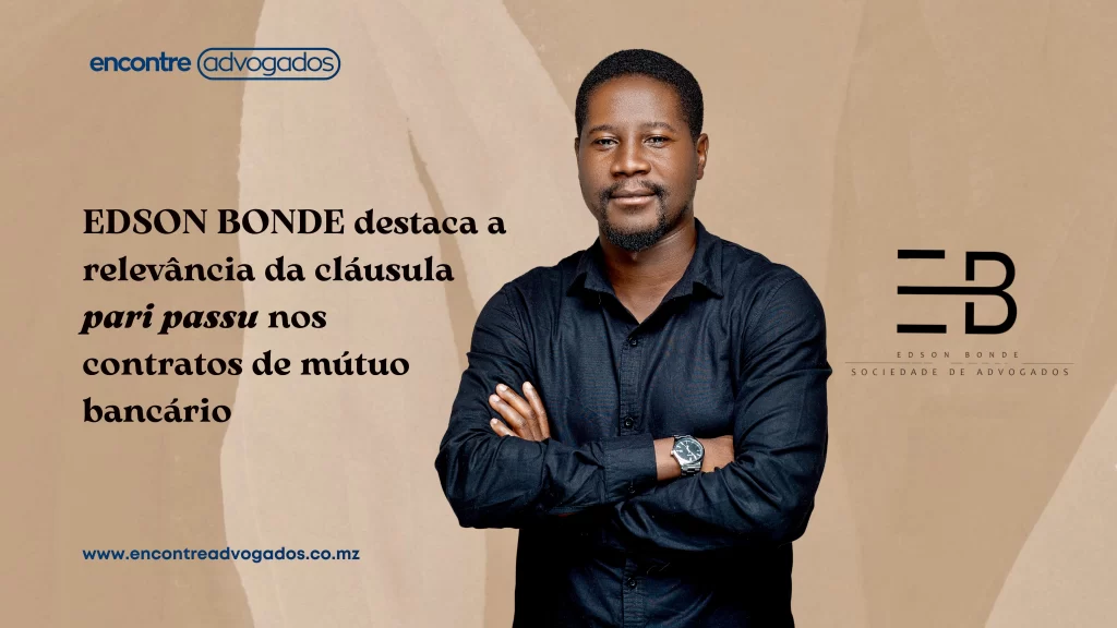 Edson Bonde, advogado desde 2017 e sócio-administrador da Edson Bonde Sociedade de Advogados, publicou uma análise sobre a cláusula pari passu, uma disposição contratual de inspiração anglo-saxónica que desempenha um papel decisivo na segurança das operações de crédito. A sociedade, com sede na Beira e a actuar no mercado desde 2021, é um escritório full service com especial enfoque nas áreas de Contencioso e Corporate, Propriedade Intelectual, Auditoria Legal e Meios Alternativos de Resolução de Litígios.
