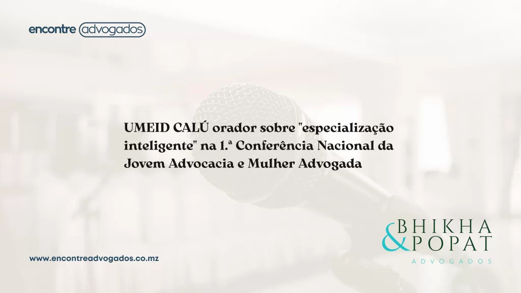 Umeid Calú, advogado desde 2015 e actualmente associado da Bhikha & Popat – Sociedade de Advogados, integrou o painel “Construir Presença, Valor e Propósito: Ferramentas para uma Advocacia Jovem com Futuro”, onde apresentou o tema “Especialização Inteligente: Caminhos para a especialização em áreas estratégicas com alto impacto e baixa saturação no mercado”.